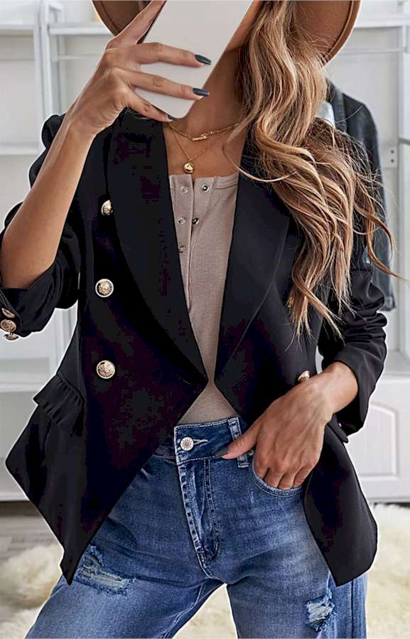 Double Breasted Long Sleeve Novelty Button Blazer