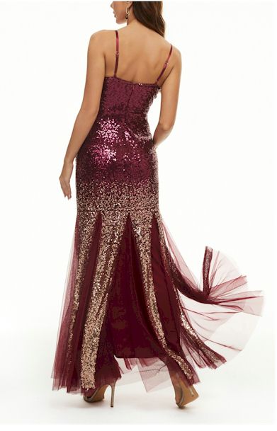 Step out in style with this exquisite gradient sequin mesh dress. Put the wow-factor in yourhomecoming night look with the dazzling sequins, luxurious fit, and ankle-skimming length. Along with the hidden zip back, this dress is sure to flatter and turn heads. Dance the night away without a worry!