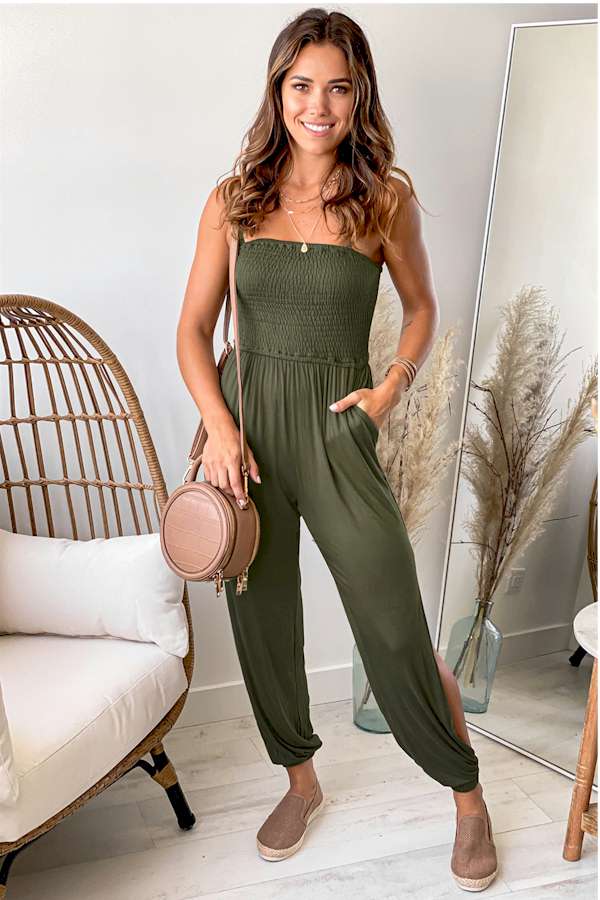 Look Fabulous in this Smocked Jogger Jumpsuit.