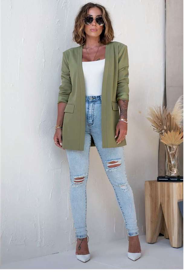 •Open front blazer with the perfect cut to shape women’s body shape.