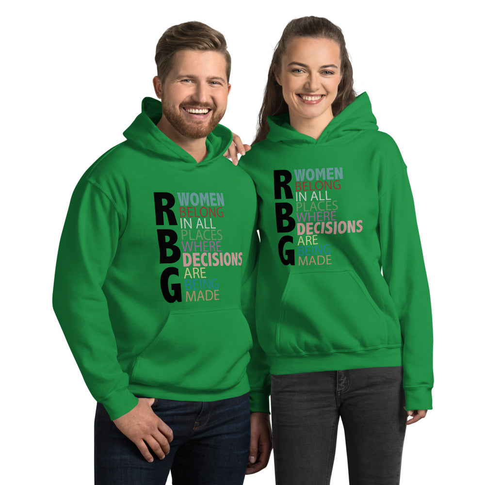 RBG Women Belong In All Places Where Decisions Are Being Made Unisex Hoodie Green
