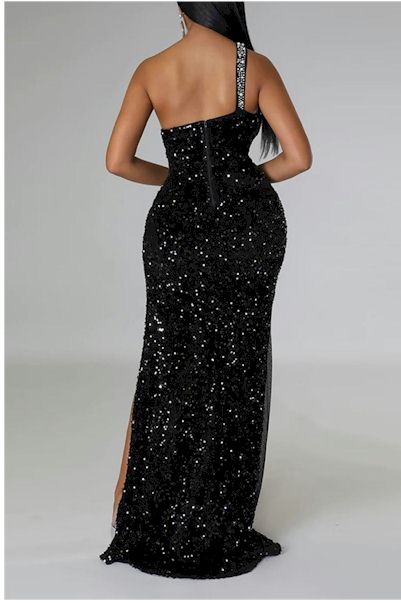 Elegance in Every Step: High Slit Zip-Up Sequin Gown    Sizes S to 2XL