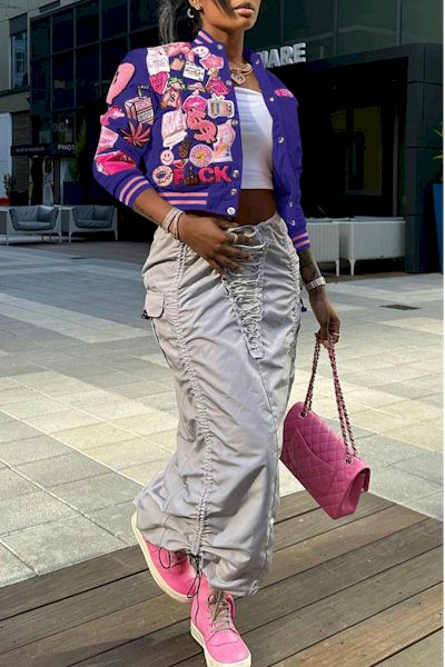Our sophisticated baseball jacket is designed with comfort and style in mind. Built with a soft, stretchy construction, this fashionable piece features a unique print design available in short and long sleeve variations. Plus sizes are also available, offering a perfect fit for a range of body types. Enjoy a refined, stylish look with this luxurious yet casual piece.