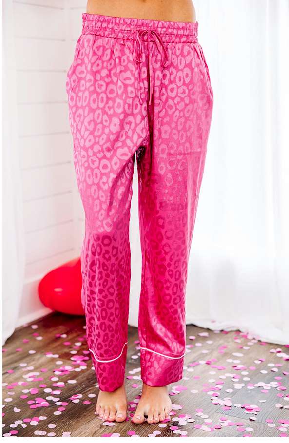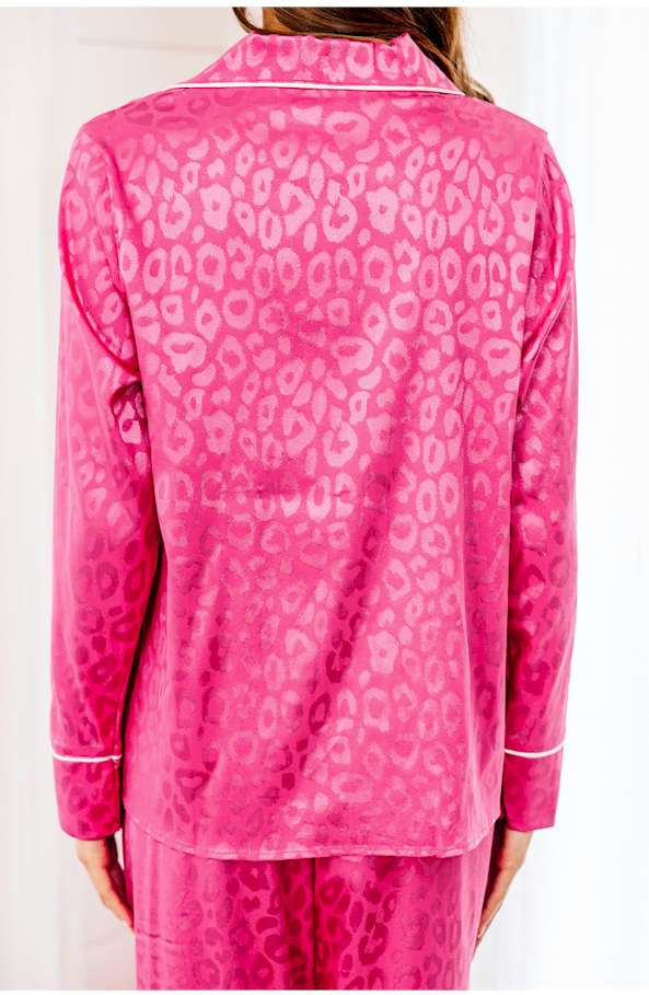 Rose 2pcs Leopard Satin Long Sleeve Pajamas Set
