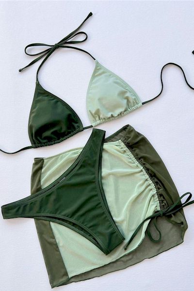 Sexy Padded Halter-Neck Lace-Up Three-Piece Swimsuit