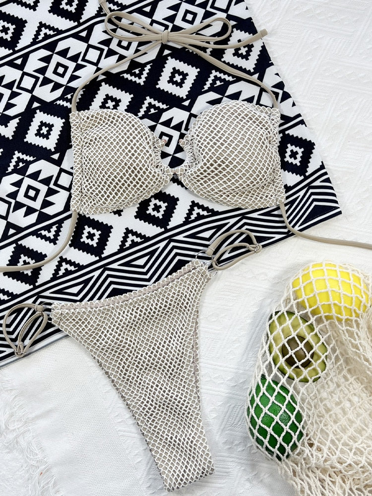 Look gorgeous and feel confident with the sexy halter bikini tied thong swimsuit! Featuring a push up cross hollow swimwear, this Brazilian-inspired bikini is perfect for your summer trips! Make waves and be the envy of the beach in this stunning swimsuit.