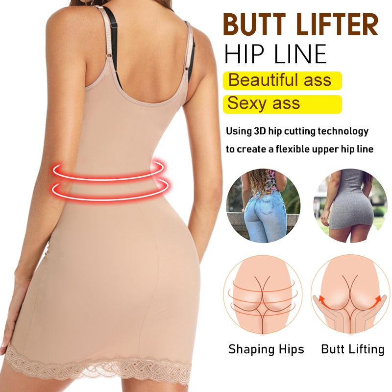 Women's Full Slip Shapewear Dress Bodysuits Lingerie with Lace Firm Control Open Bust Waist Cinchers Body Shaper Dresses